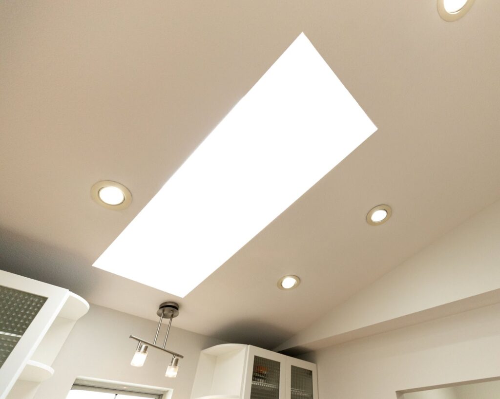 An alternative to white on the ceiling is a light, neutral brown. This brings the same clean look to a room while also promoting a sense of comfort.
